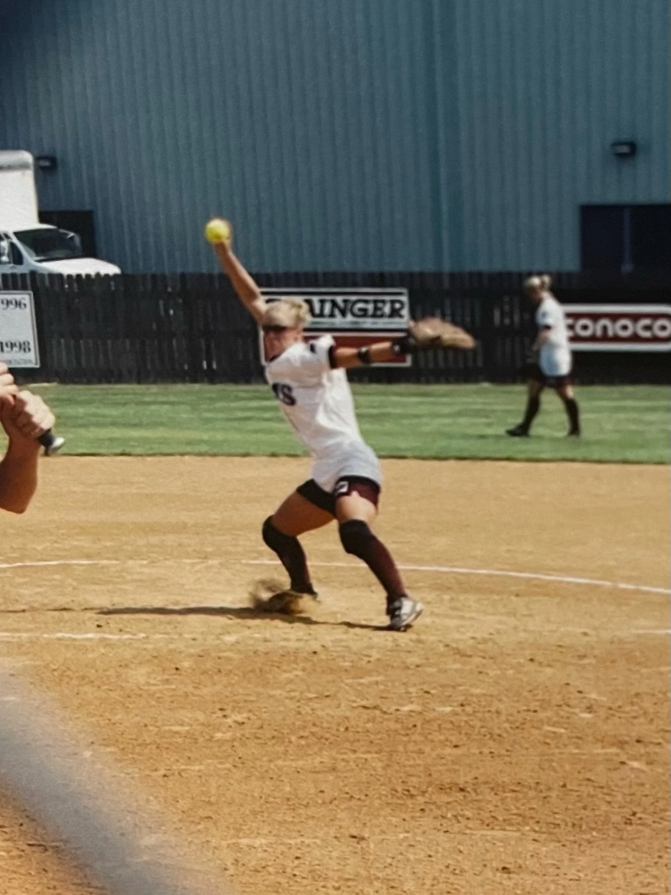 A: We discovered the injury in my ankle because of something else. I’m basically bone on bone in my ankle. I had to sit out for about 6 months to let it heal to avoid surgery when I was about 12. My dad had me pitching off of a drum stool. I was putting in time and still practicing but not able to play in games which was the fun part. That was the most impactful injury. I had back issues so I was having to see chiropractors, going to massage therapists, going to the training room and being worked on a lot. I could barely tie my shoes but I could pitch in a softball game because I had to. I was working through that adversity, digging deep and finding the strength. You also don’t want to sacrifice your whole life. There are more important things in life than a game. With each one of my kids, my back was hurting worse and worse. It definitely held me back a lot in life and in doing the things I want to do and that was difficult.