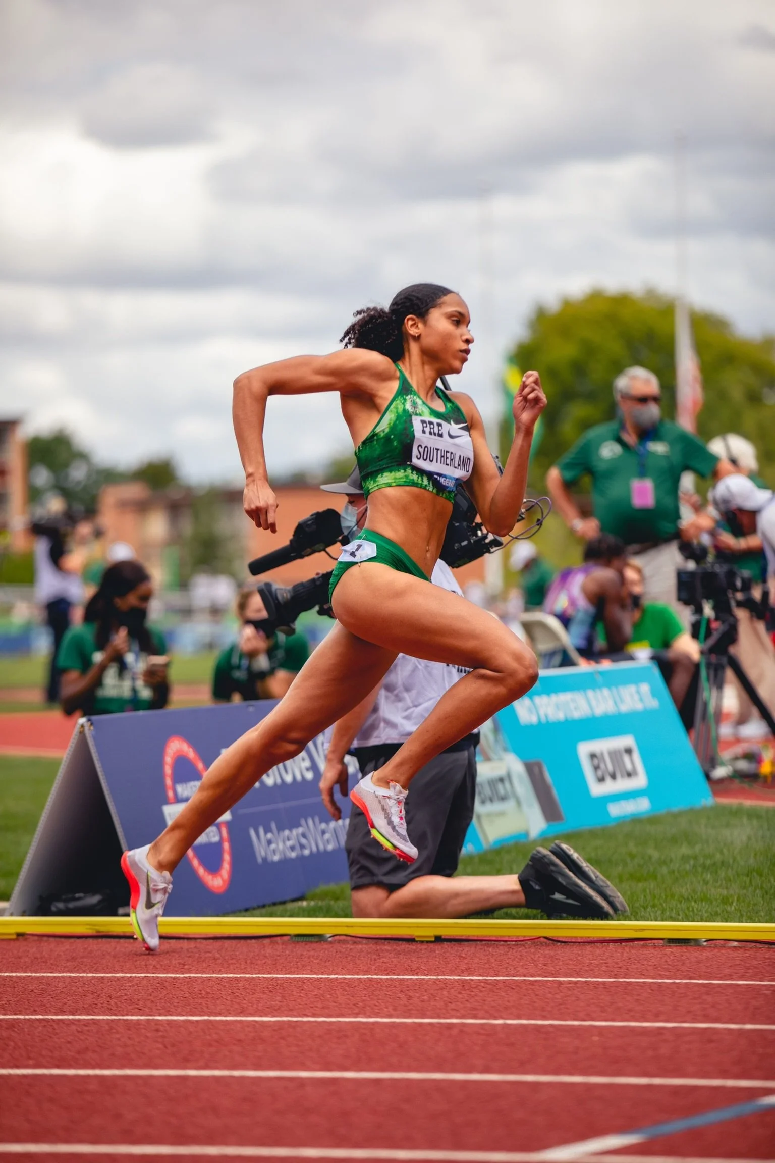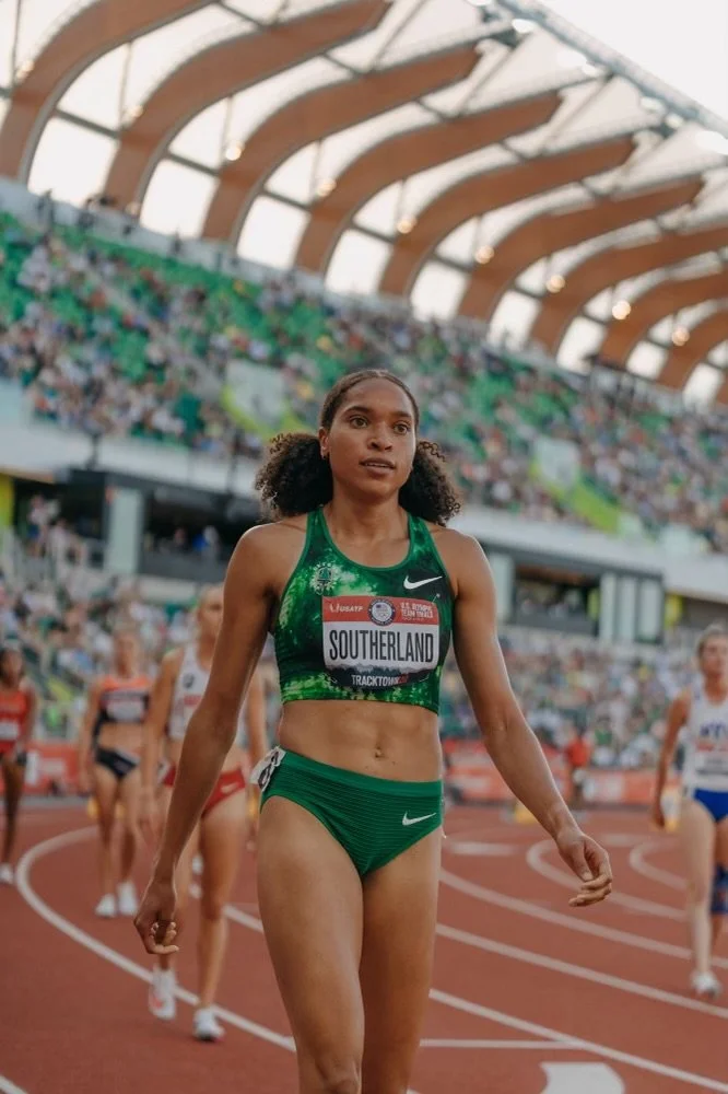 Sabrina Southerland is a professional runner sponsored by Nike. She is from Floral Park, Queens, New York. She ran track for 4 years and got her undergraduate degree from Georgetown University as a Hoya. Her degree was in Sociology and Psychology with minors in Women’s Studies and African American Studies. After that, she ran track for the Ducks at the University of Oregon while working on her master’s degree. She graduated in 2019 with her Master of Nonprofit Management.